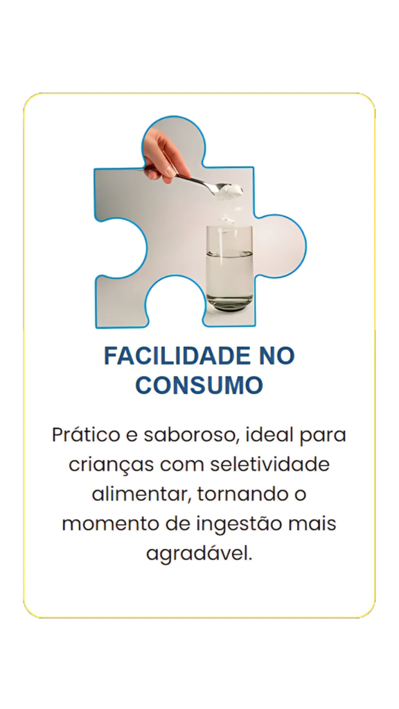 Fácil de consumir e com sabor agradável, o Neuro Mix TEA foi pensado para atender as preferências e restrições alimentares das crianças, garantindo que o momento de ingestão seja tranquilo e sem resistência.